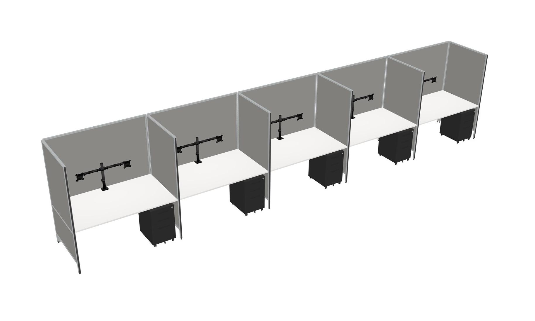 Système De Panneaux Flexibles Blancs Pour 5 Tiroirs Mobiles En Métal Et Bras D'écran (bras Doubles)