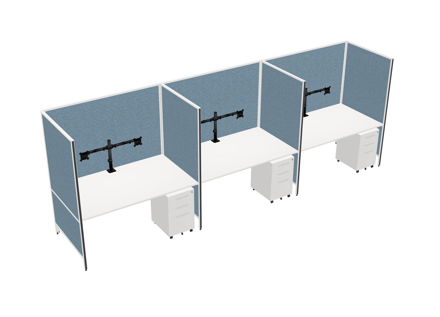 Système De Panneaux Flexibles Blancs Pour 3 Tiroirs Mobiles En Métal Et Bras D'écran (bras Doubles)