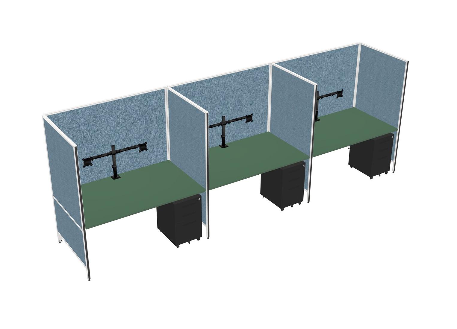 Système De Panneaux Flexibles Verts Pour 3 Tiroirs Mobiles En Métal + Bras D'écran (bras Doubles)
