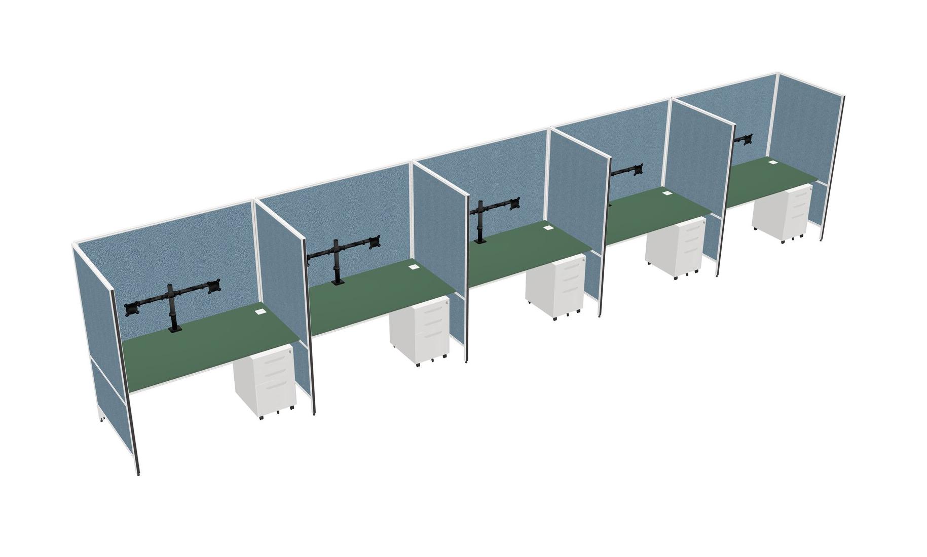 Système De Panneaux Flexibles Verts Pour 5 Tiroirs Mobiles En Métal Et Bras D'écran (bras Doubles)