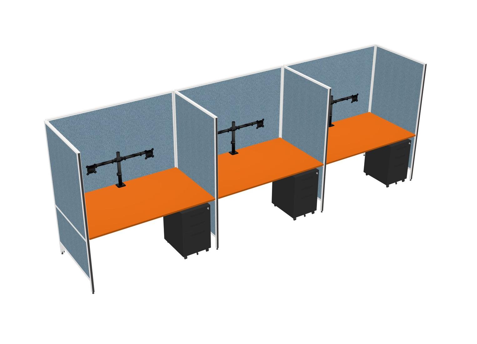 Système De Panneaux Flexibles Orange Pour 3 Tiroirs Mobiles En Métal Et Bras D'écran (bras Doubles)
