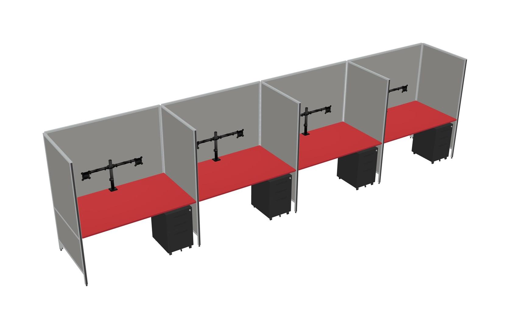 Système De Panneaux Flexibles Prism Red Pour 4 tiroirs Mobiles En Métal Et Bras D'écran (bras Doubles)