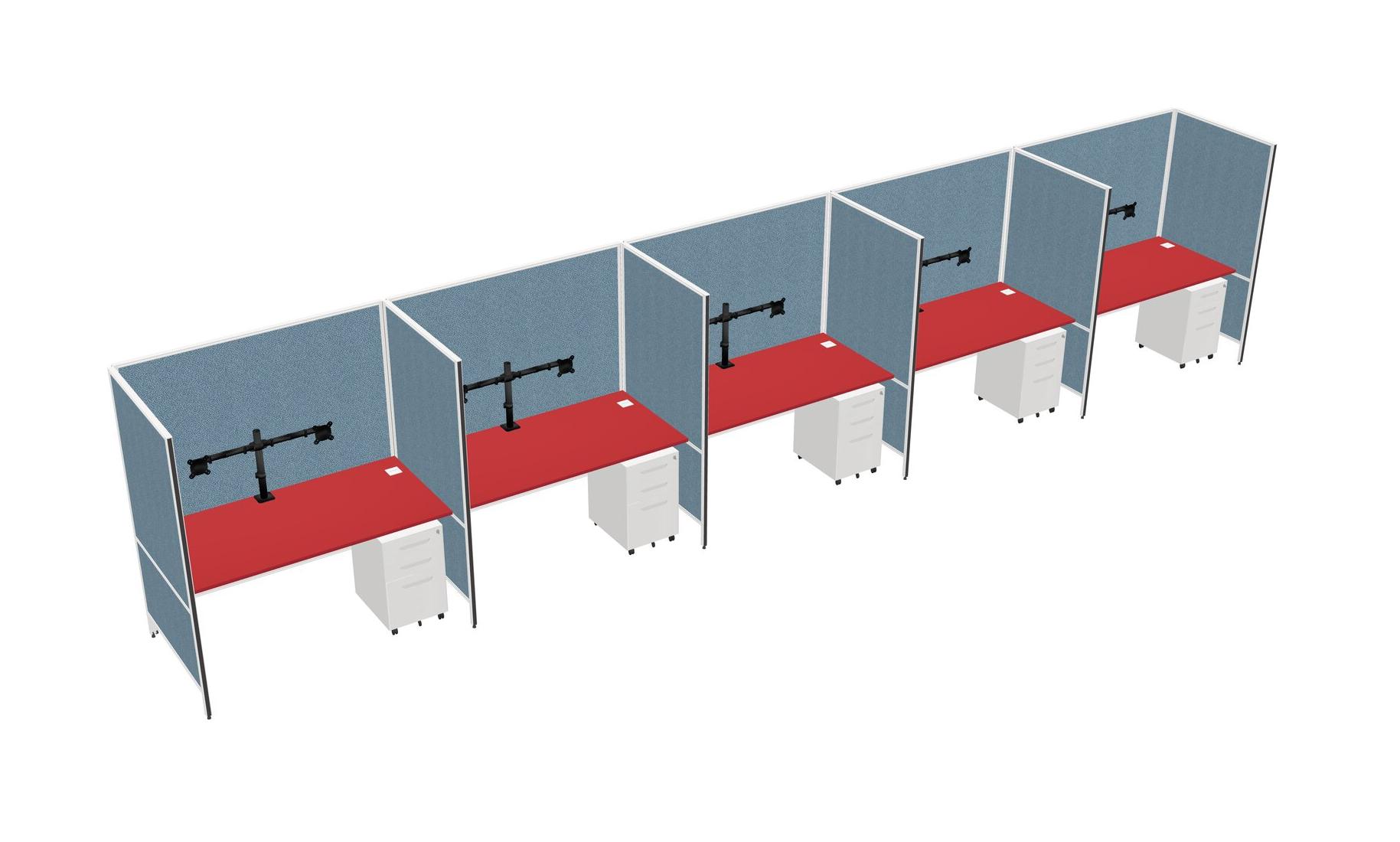 Système De Panneaux Flexibles Prism Red Pour 5 Tiroirs Mobiles En Métal Et Bras D'écran (bras Doubles)