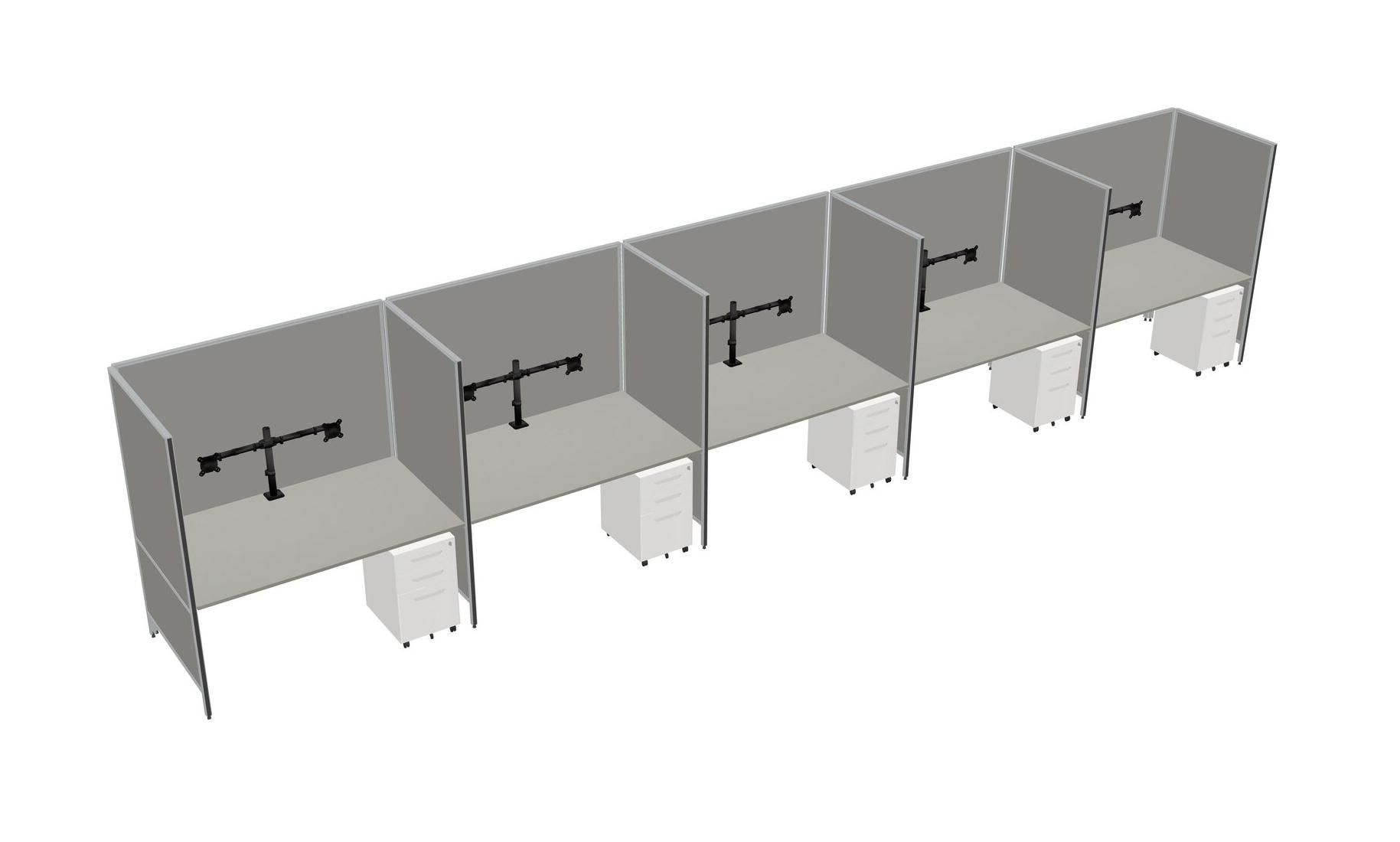 Système De Panneaux Flexibles Grey Shadows Pour 5 Personnes + Tiroirs Mobiles En Métal + Bras D'écran (bras Doubles)