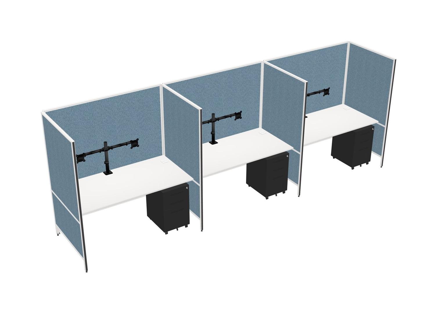 Système De Panneaux Flexibles Blancs Pour 3 Tiroirs Mobiles En Métal Et Bras D'écran (bras Doubles)