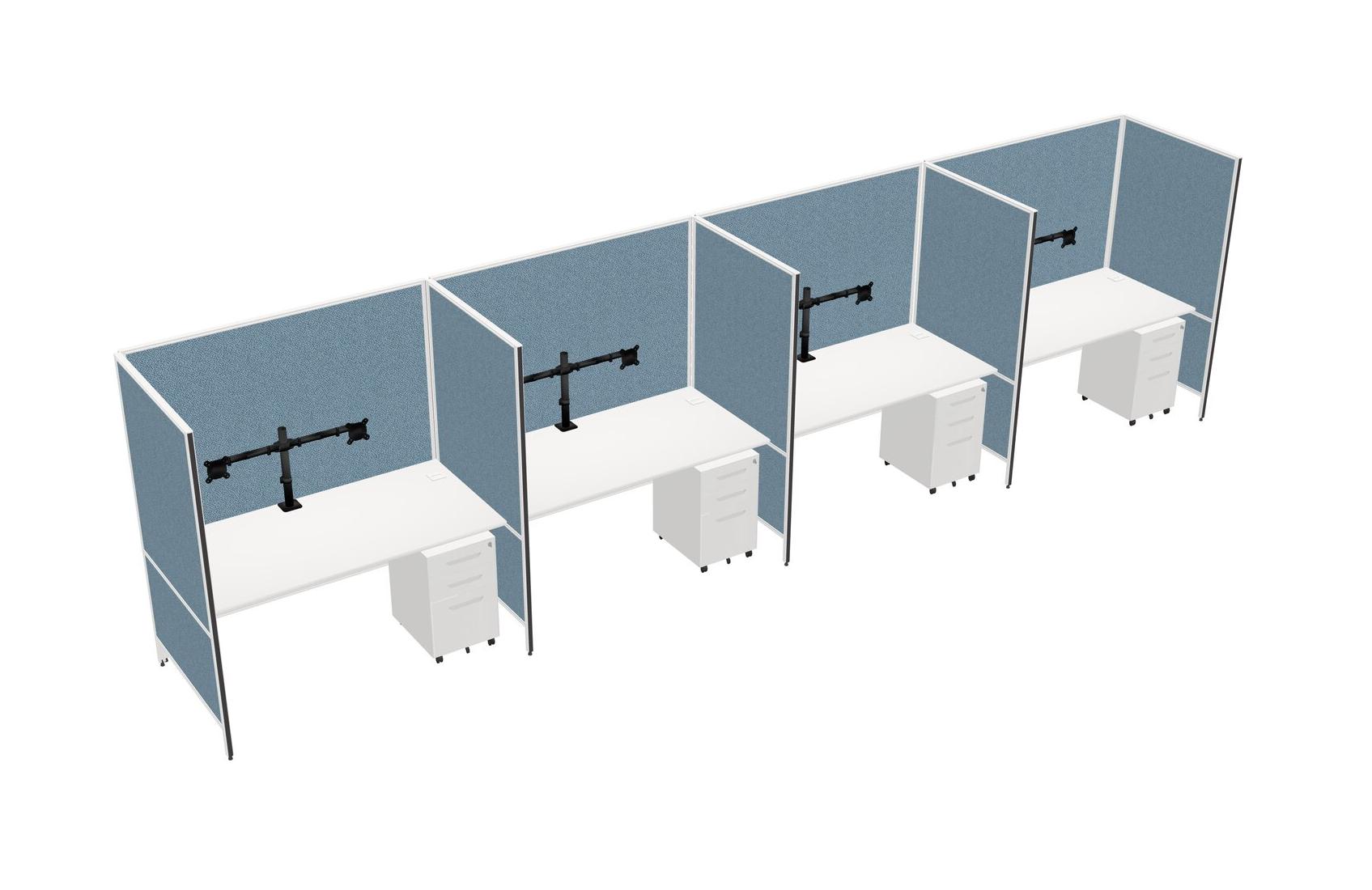 Système De Panneaux Flexibles Blancs Pour 4 tiroirs Mobiles En Métal Et Bras D'écran (bras Doubles)