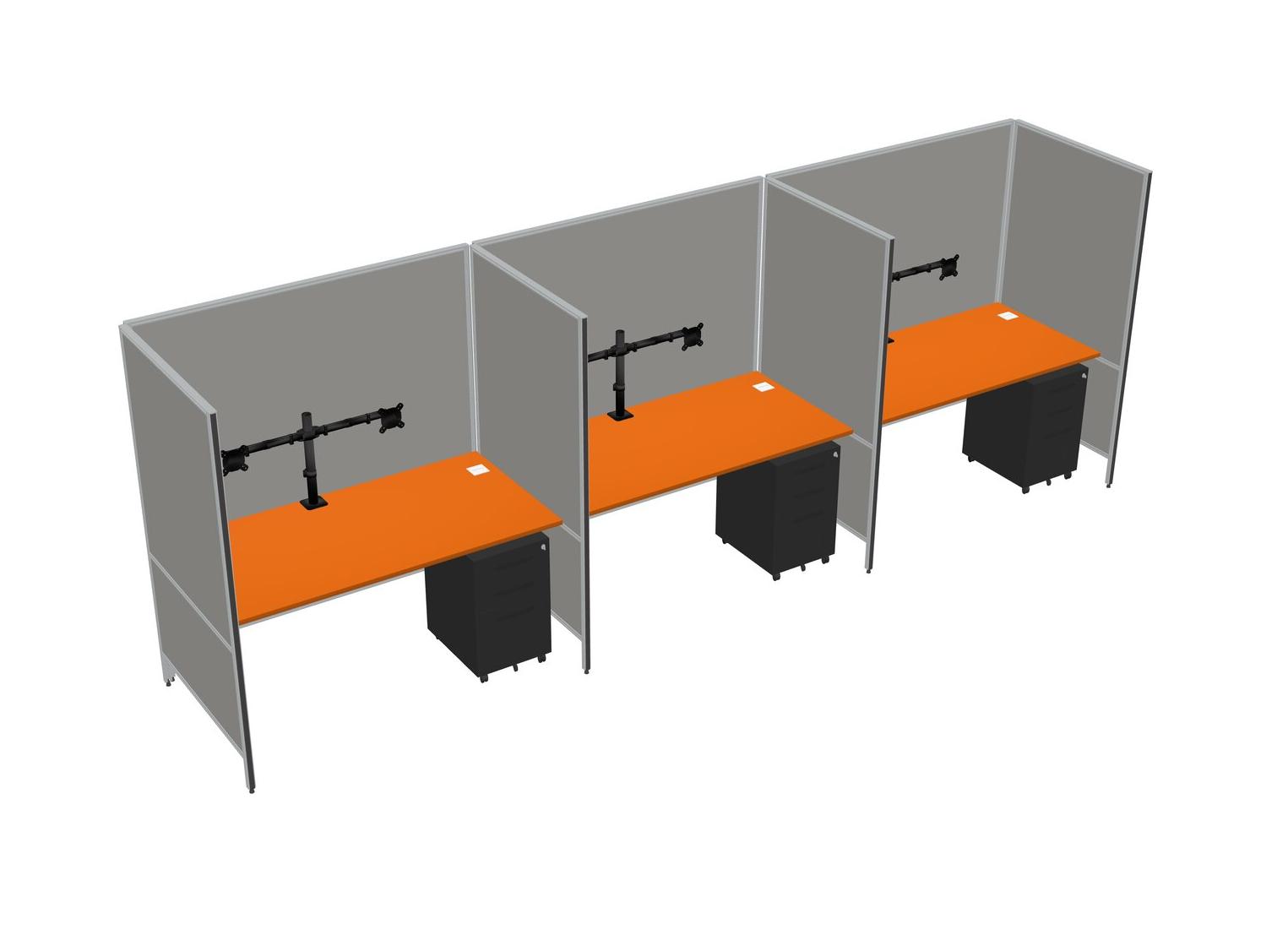 Système De Panneaux Flexibles Orange Pour 3 Tiroirs Mobiles En Métal Et Bras D'écran (bras Doubles)