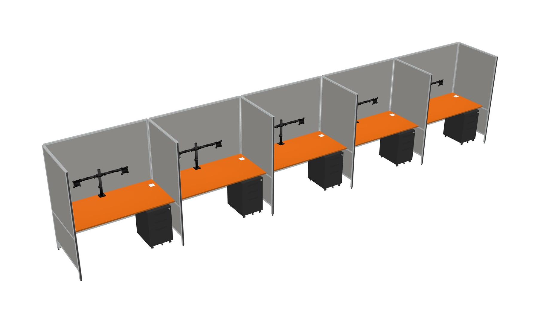 Système De Panneaux Flexibles Orange Pour 5 Tiroirs Mobiles En Métal Et Bras D'écran (bras Doubles)