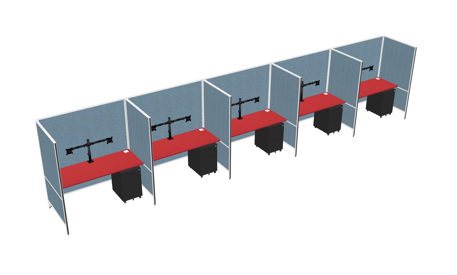 Système De Panneaux Flexibles Prism Red Pour 5 Tiroirs Mobiles En Métal Et Bras D'écran (bras Doubles)