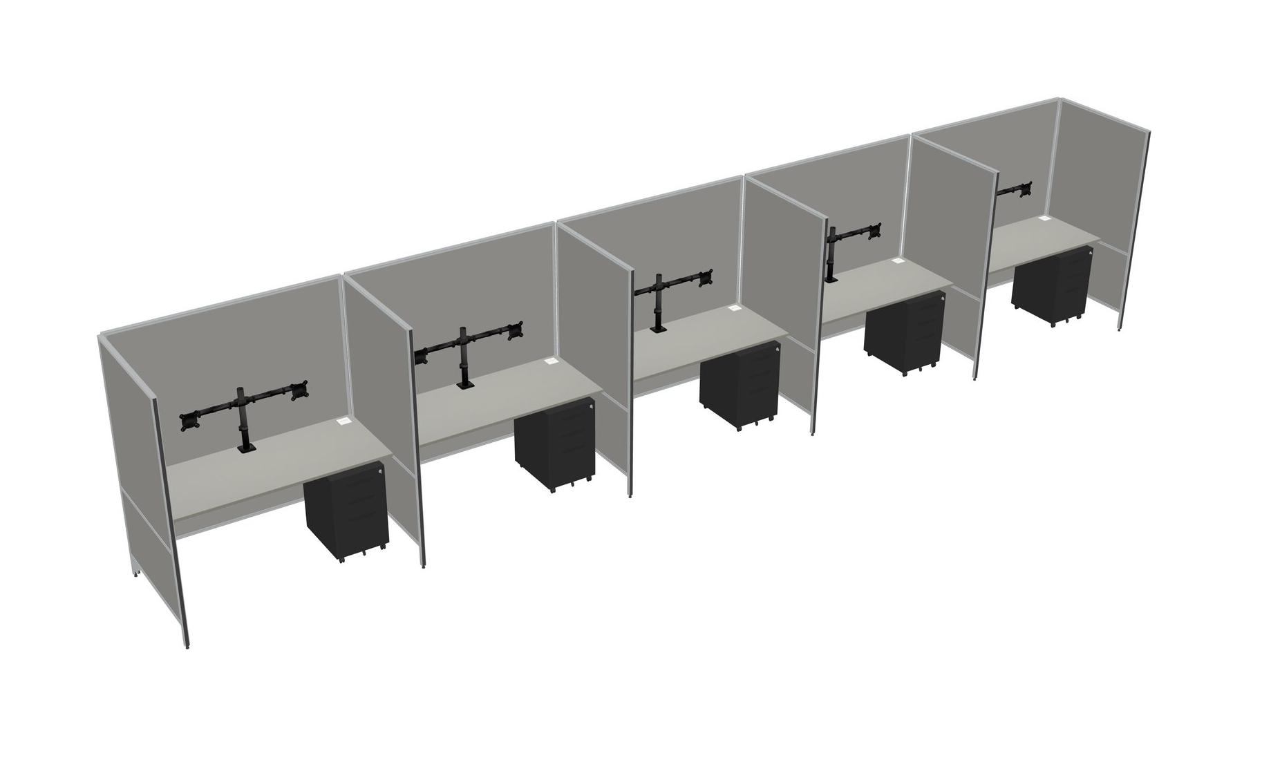Système De Panneaux Flexibles Grey Shadows Pour 5 Personnes + Tiroirs Mobiles En Métal + Bras D'écran (bras Doubles)