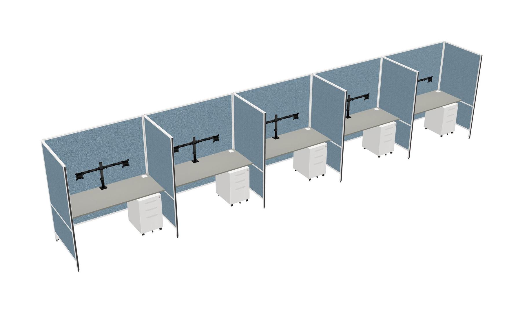 Système De Panneaux Flexibles Grey Shadows Pour 5 Personnes + Tiroirs Mobiles En Métal + Bras D'écran (bras Doubles)