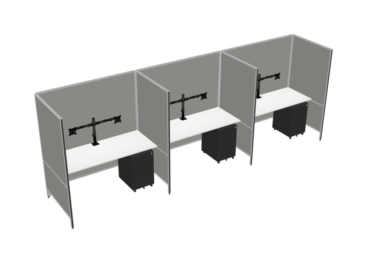 Système De Panneaux Flexibles Blancs Pour 3 Tiroirs Mobiles En Métal Et Bras D'écran (bras Doubles)