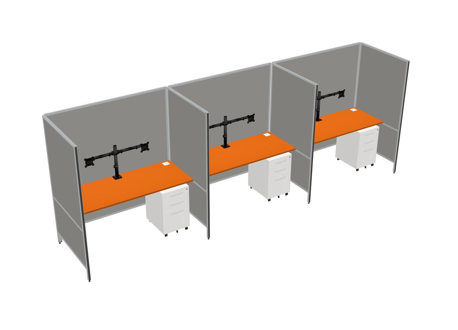 Système De Panneaux Flexibles Orange Pour 3 Tiroirs Mobiles En Métal Et Bras D'écran (bras Doubles)