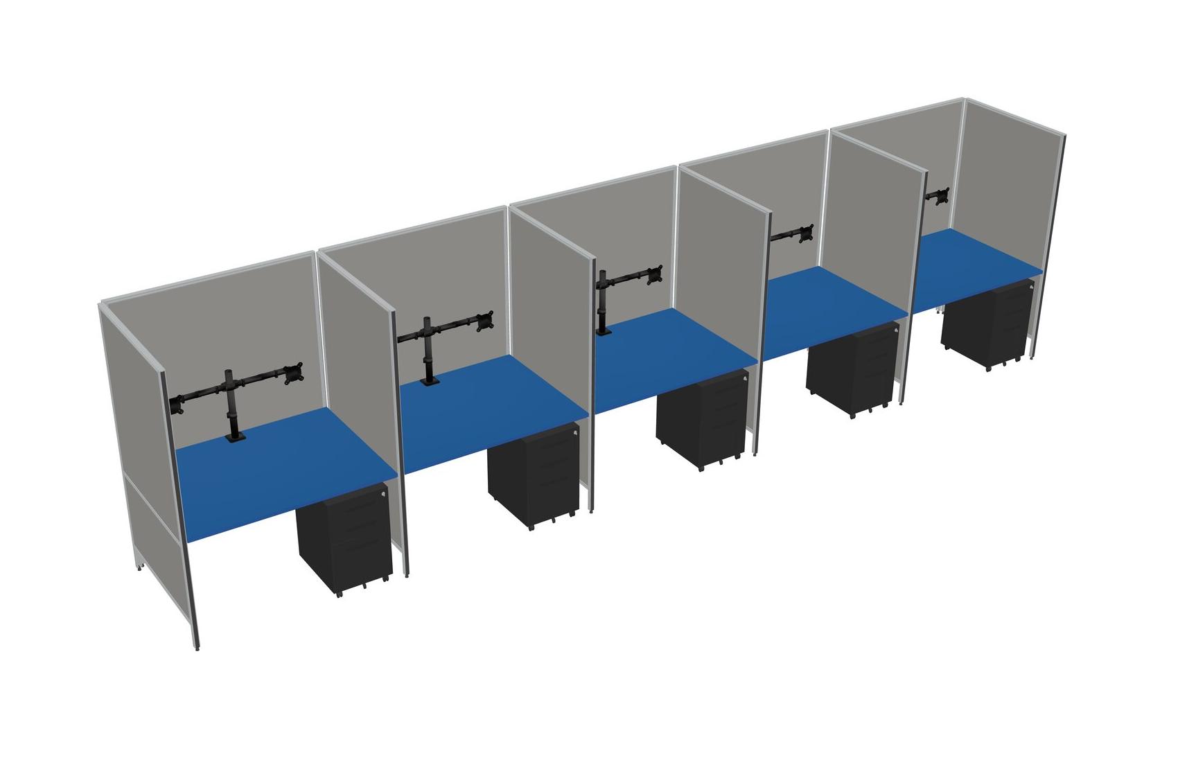 Système De Panneaux Flexibles Prism Blue Pour 5 Tiroirs Mobiles En Métal Et Bras D'écran (bras Doubles)