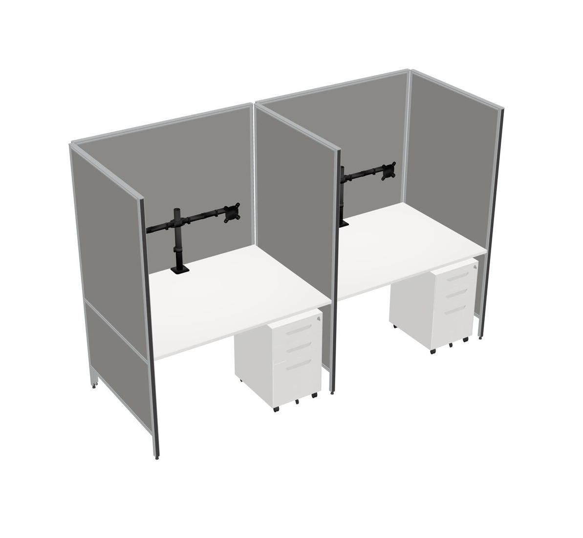 Système De Panneaux Flexibles Blancs Pour 2 + tiroirs Mobiles En Métal + bras Pour écran (bras Doubles)
