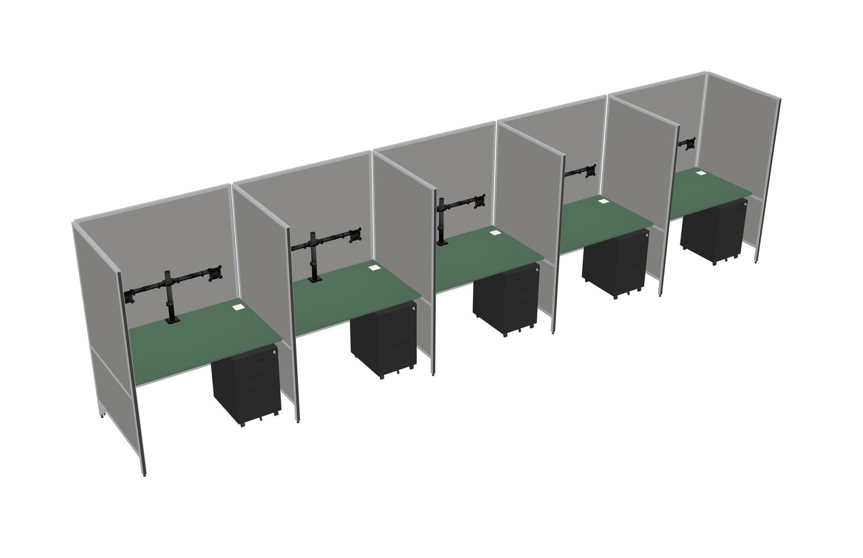 Système De Panneaux Flexibles Verts Pour 5 Tiroirs Mobiles En Métal Et Bras D'écran (bras Doubles)