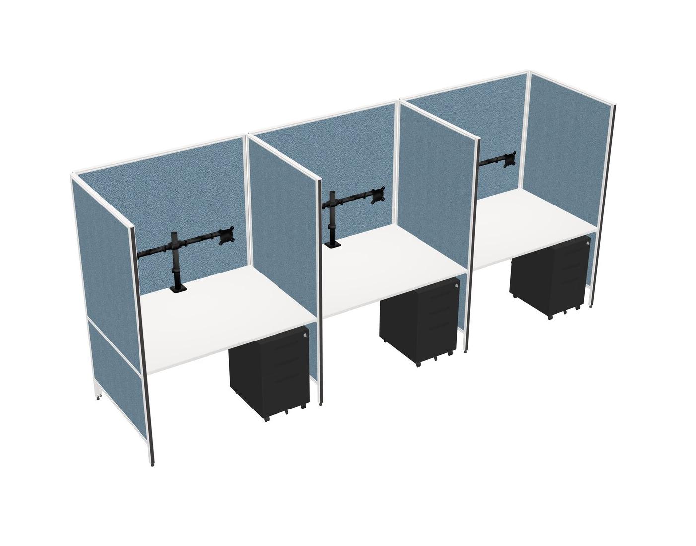 Système De Panneaux Flexibles Blancs Pour 3 Tiroirs Mobiles En Métal Et Bras D'écran (bras Doubles)