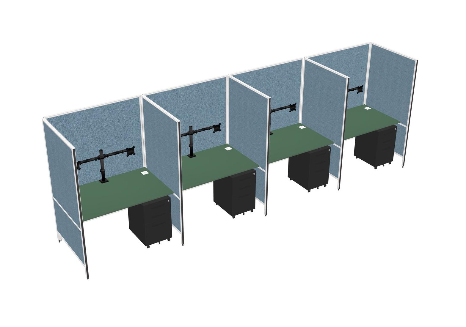 Système De Panneaux Flexibles Verts Pour 4 Tiroirs Mobiles En Métal Et Bras D'écran (bras Doubles)