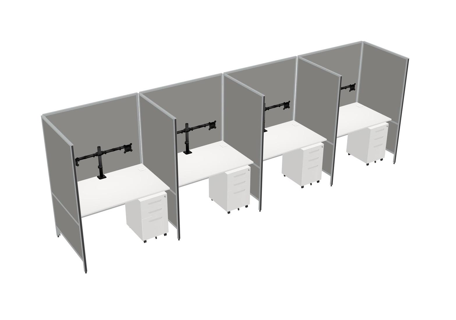 Système De Panneaux Flexibles Blancs Pour 4 tiroirs Mobiles En Métal Et Bras D'écran (bras Doubles)