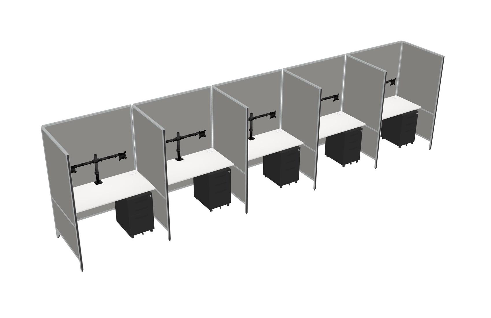 Système De Panneaux Flexibles Blancs Pour 5 Tiroirs Mobiles En Métal Et Bras D'écran (bras Doubles)