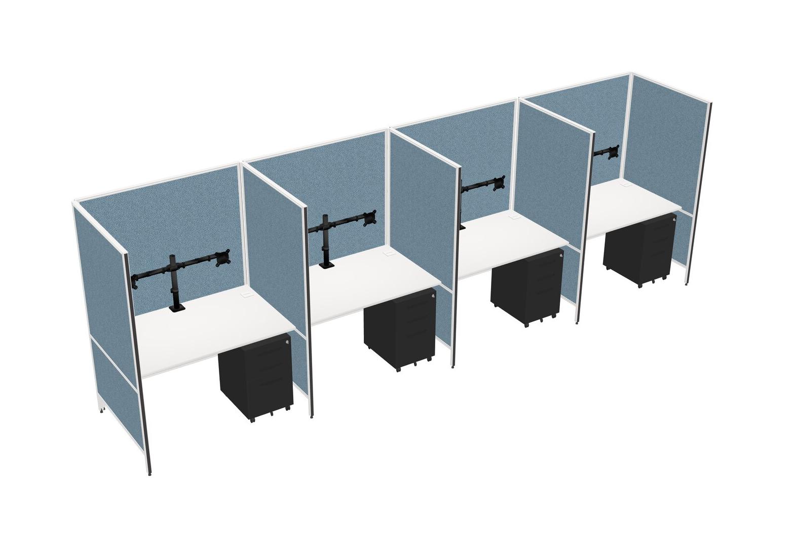 Système De Panneaux Flexibles Blancs Pour 4 tiroirs Mobiles En Métal Et Bras D'écran (bras Doubles)