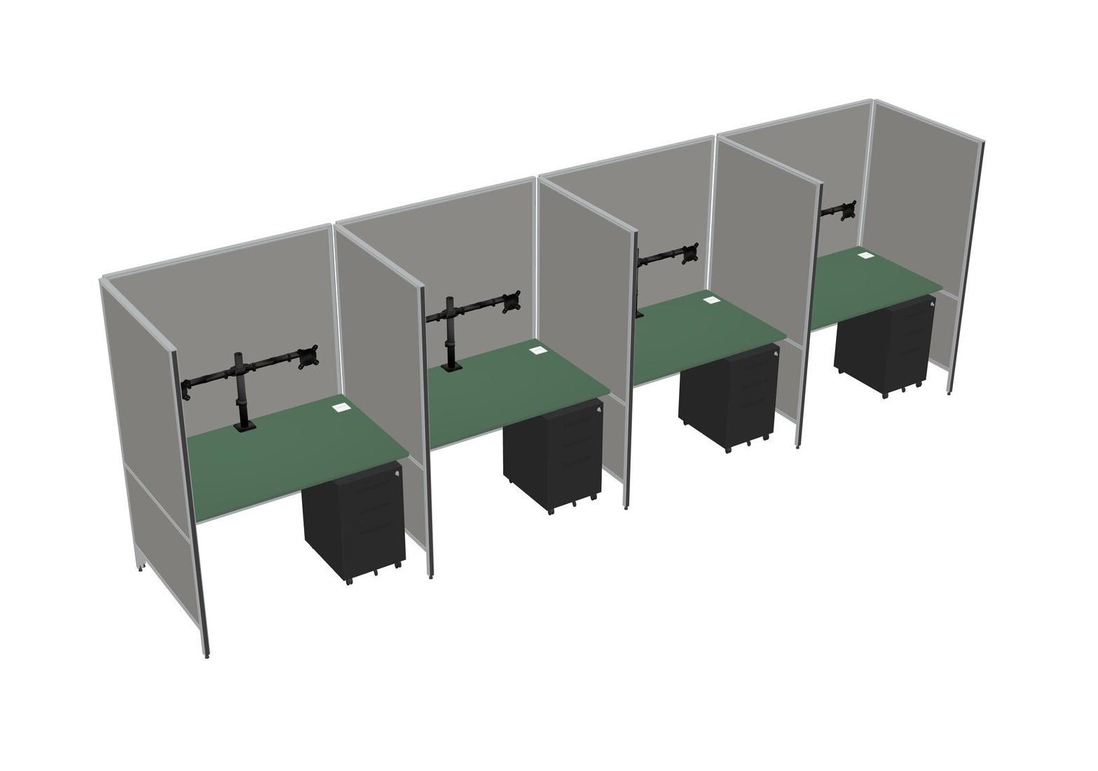 Système De Panneaux Flexibles Verts Pour 4 Tiroirs Mobiles En Métal Et Bras D'écran (bras Doubles)