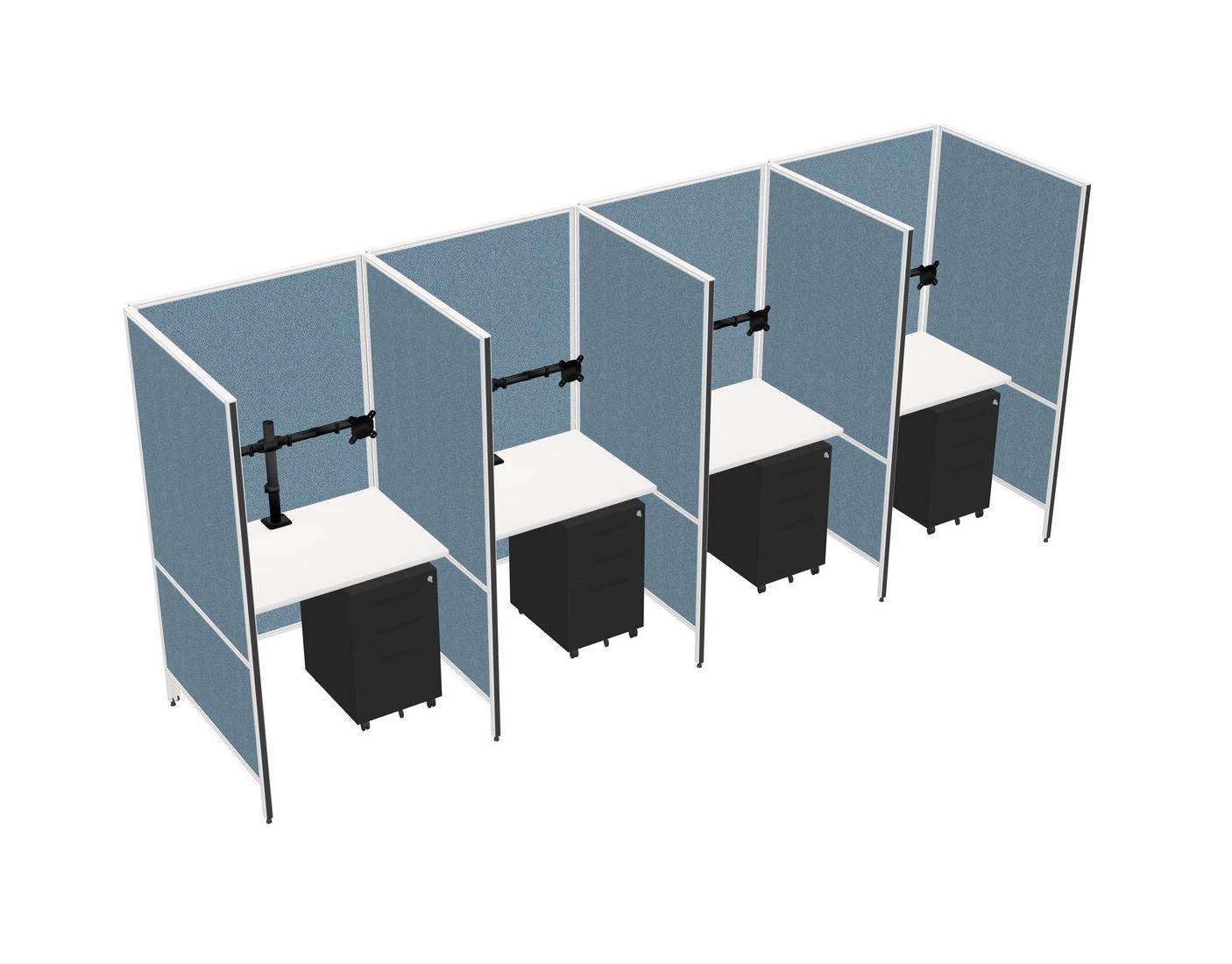 Système De Panneaux Flexibles Blancs Pour 4 tiroirs Mobiles En Métal Et Bras D'écran (bras Doubles)