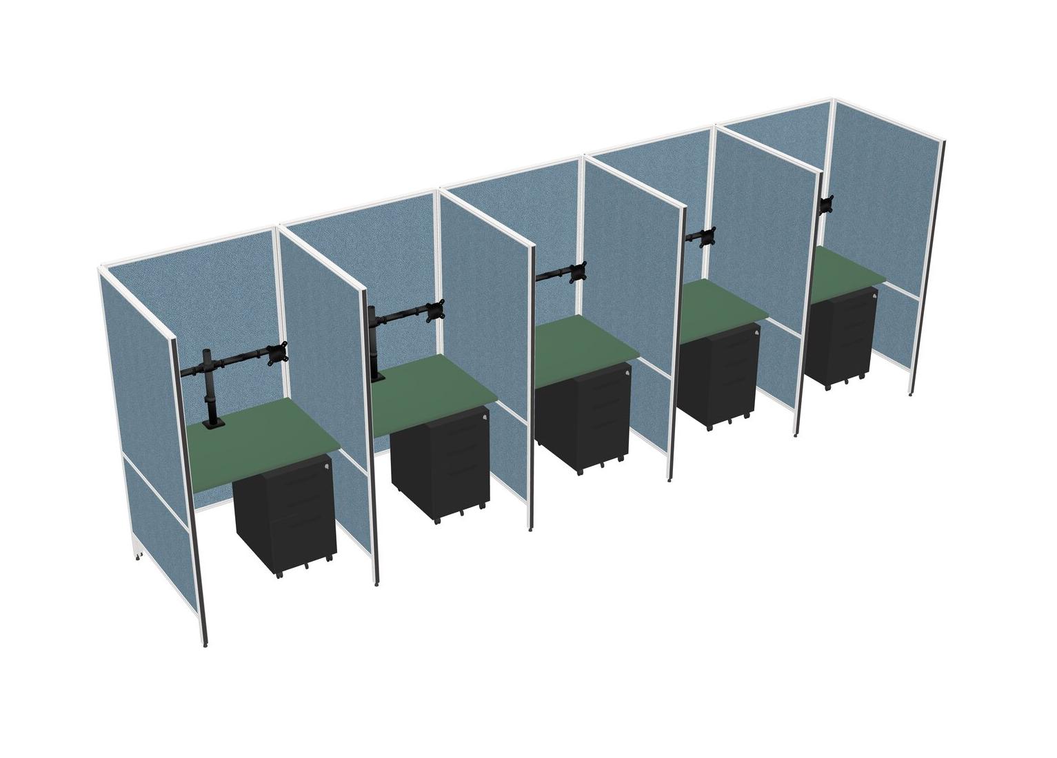 Système De Panneaux Flexibles Verts Pour 5 Tiroirs Mobiles En Métal Et Bras D'écran (bras Doubles)