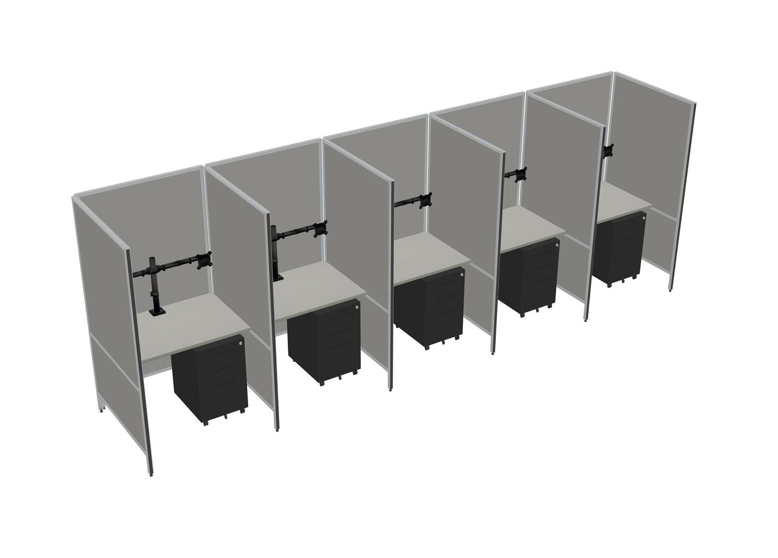Système De Panneaux Flexibles Grey Shadows Pour 5 Personnes + Tiroirs Mobiles En Métal + Bras D'écran (bras Doubles)