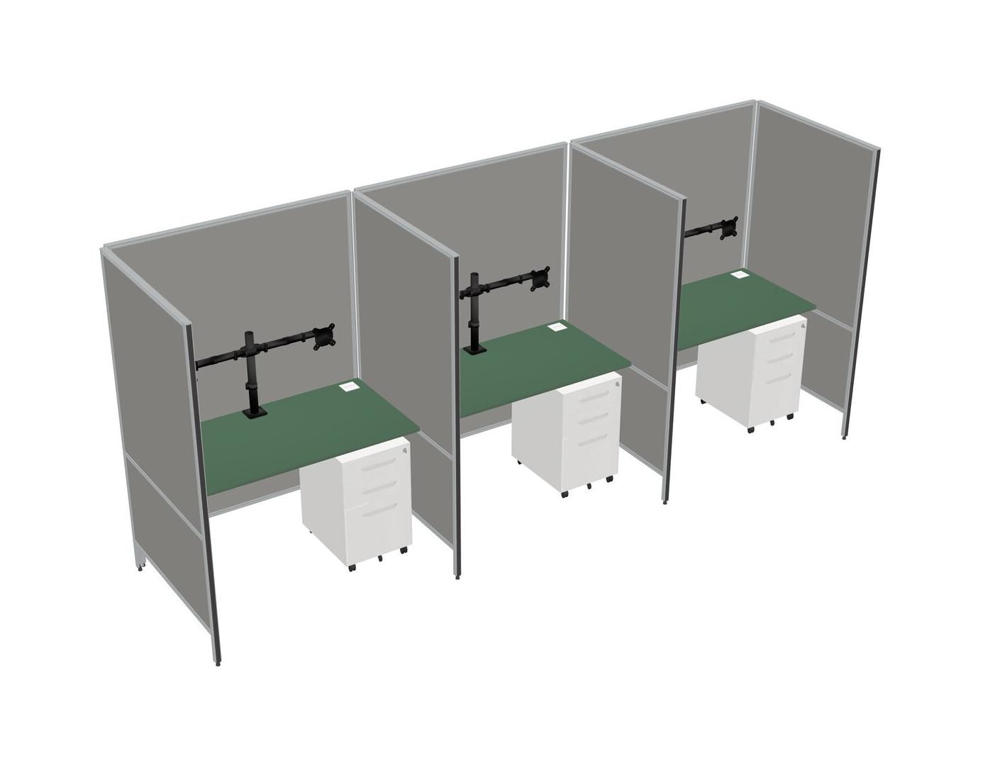Système De Panneaux Flexibles Verts Pour 3 Tiroirs Mobiles En Métal + Bras D'écran (bras Doubles)