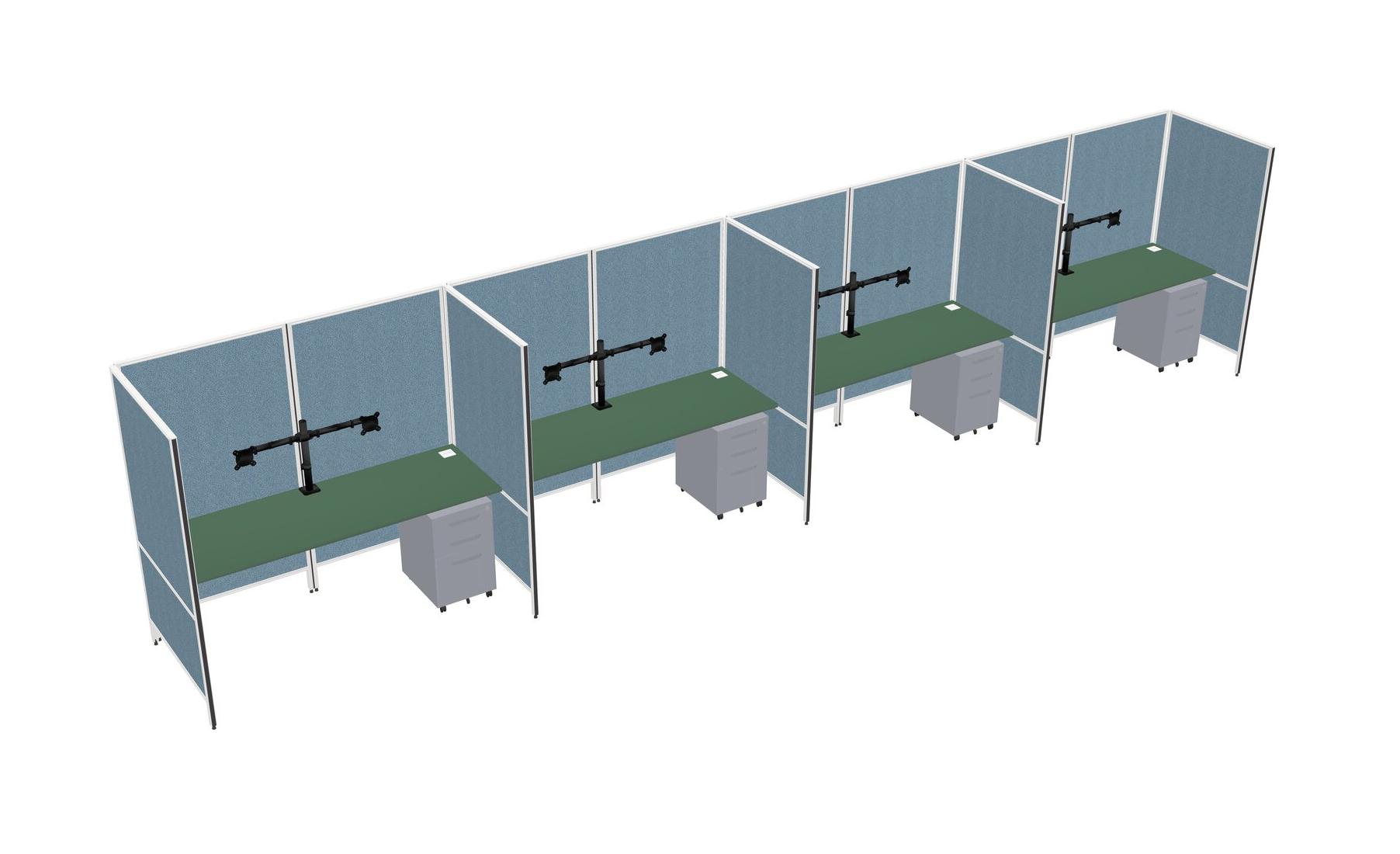 Système De Panneaux Flexibles Verts Pour 4 Tiroirs Mobiles En Métal Et Bras D'écran (bras Doubles)