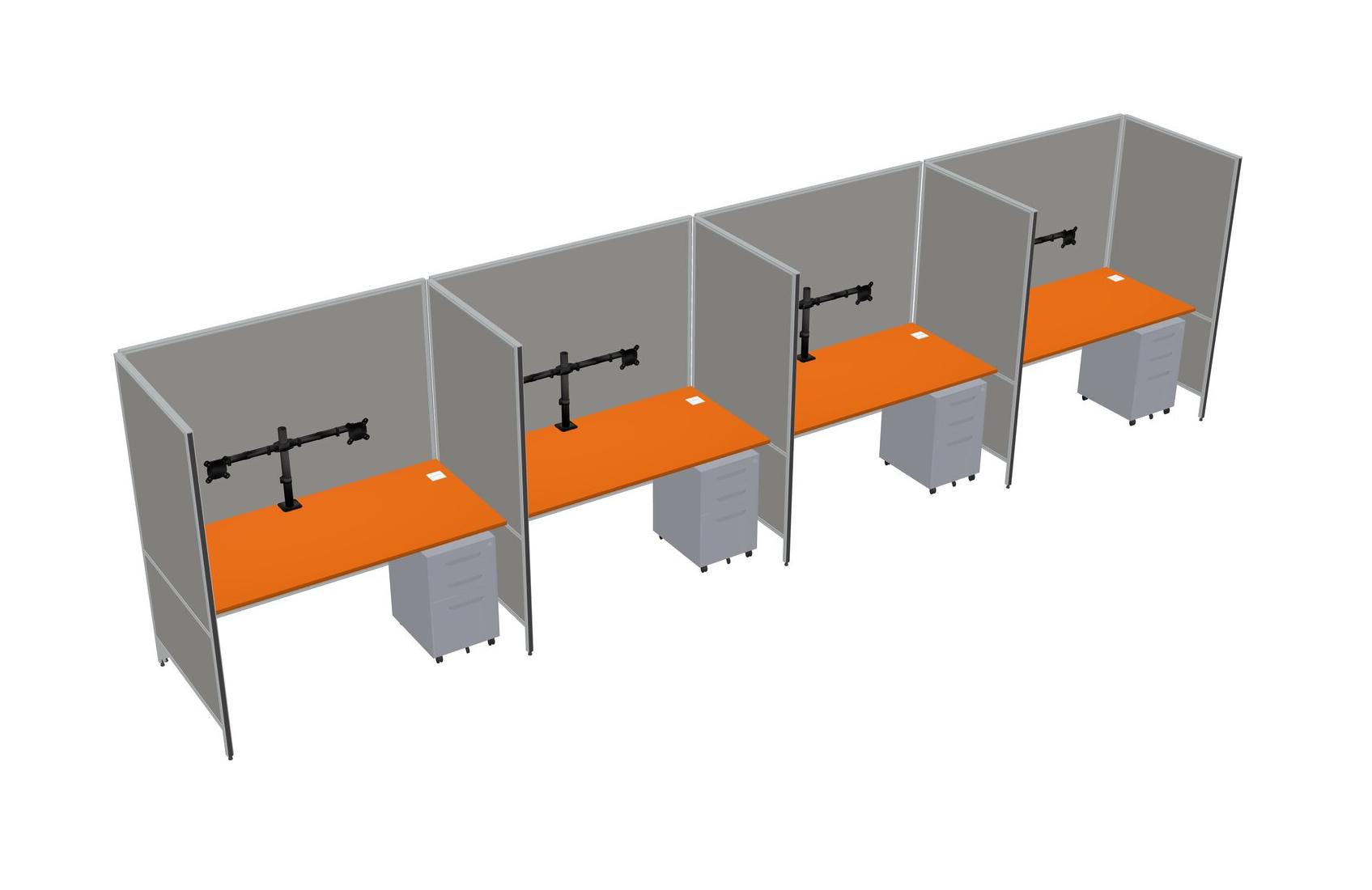 Système De Panneaux Flexibles Orange Pour 4 tiroirs Mobiles En Métal Et Bras D'écran (bras Doubles)