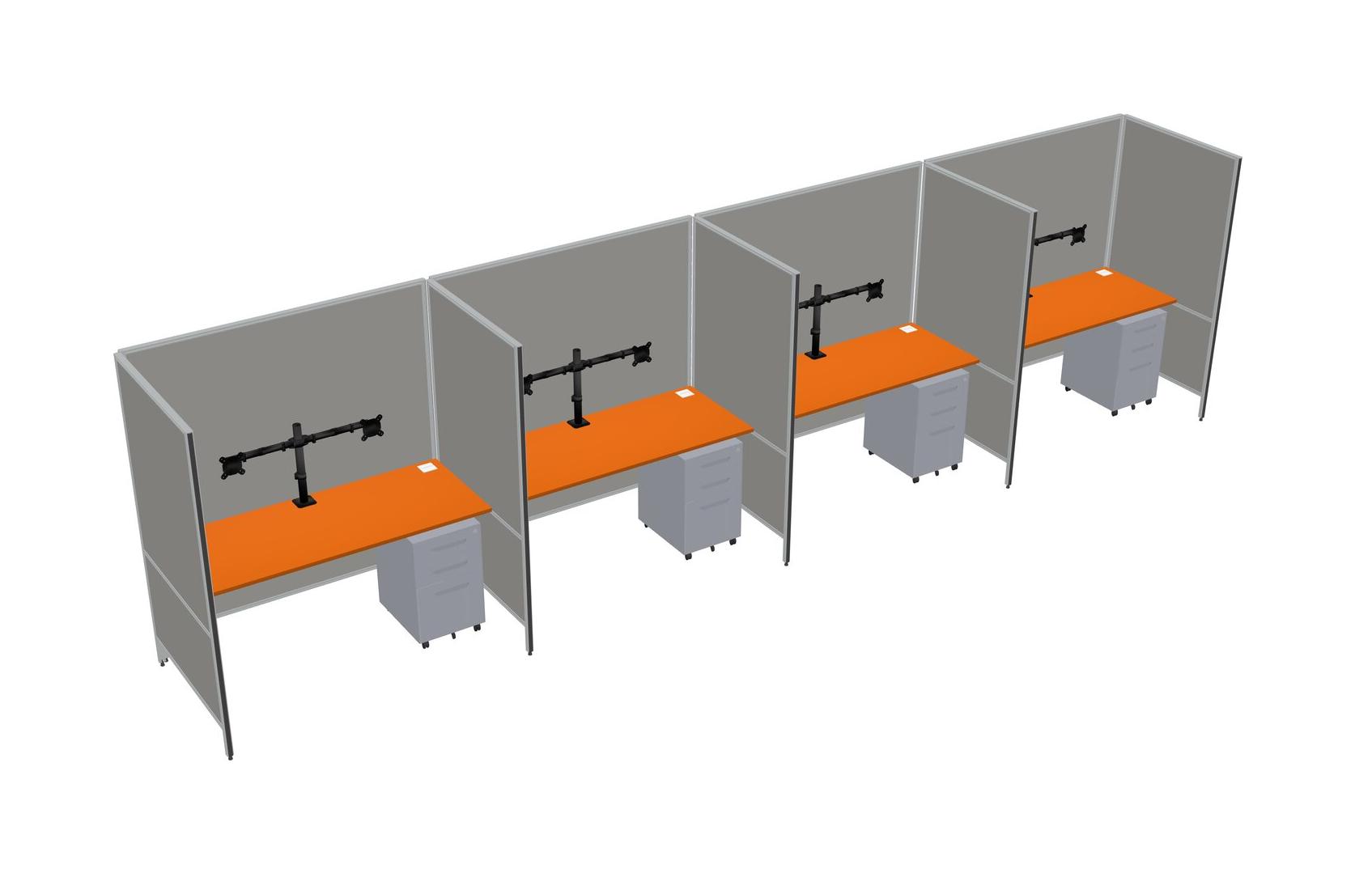 Système De Panneaux Flexibles Orange Pour 4 tiroirs Mobiles En Métal Et Bras D'écran (bras Doubles)
