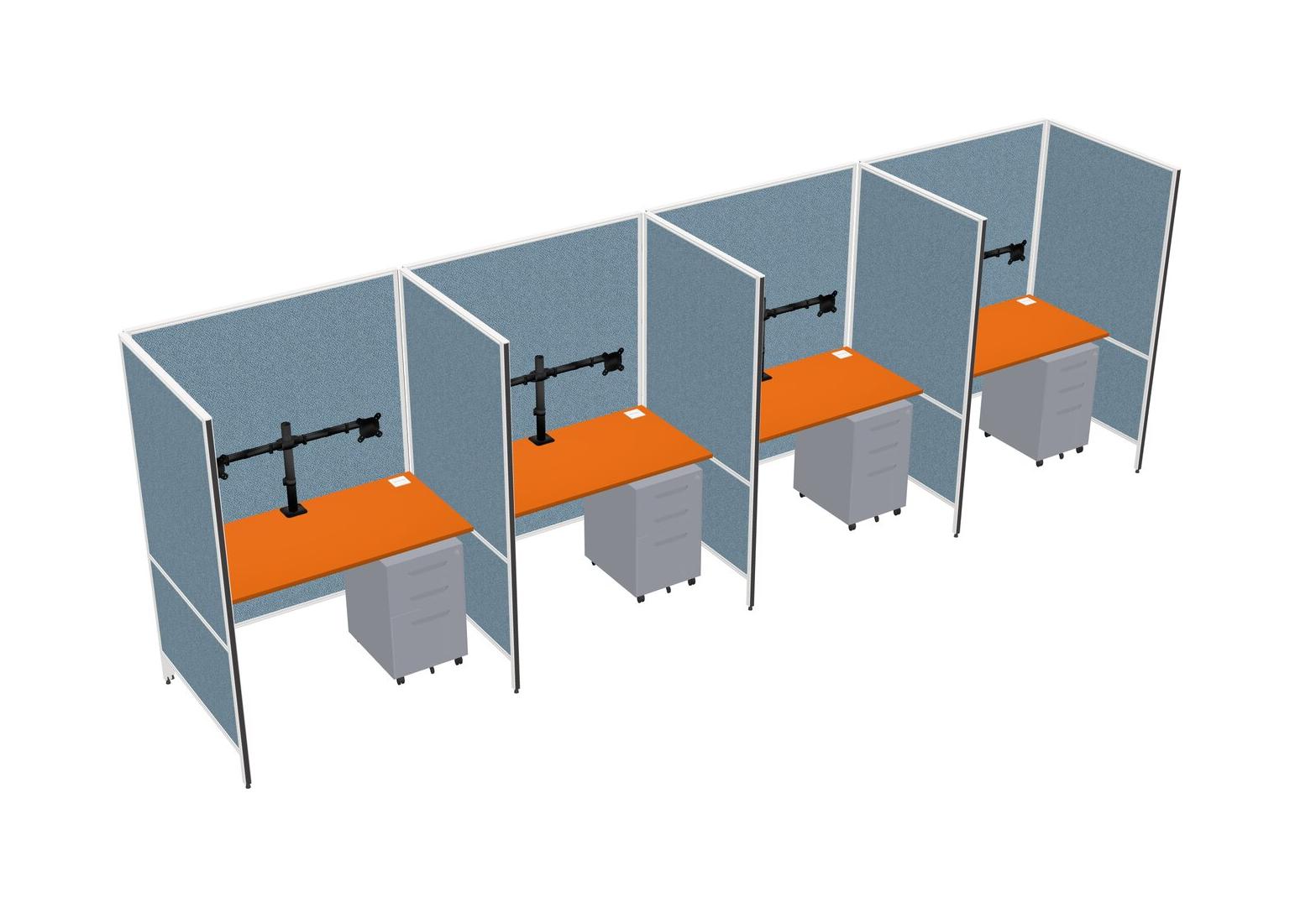 Système De Panneaux Flexibles Orange Pour 4 tiroirs Mobiles En Métal Et Bras D'écran (bras Doubles)