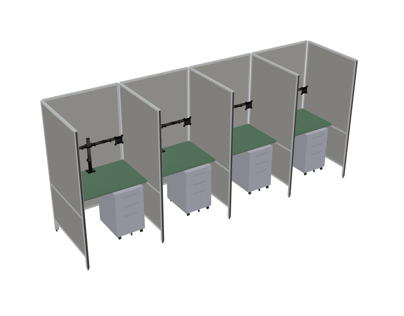 Système De Panneaux Flexibles Verts Pour 4 Tiroirs Mobiles En Métal Et Bras D'écran (bras Doubles)