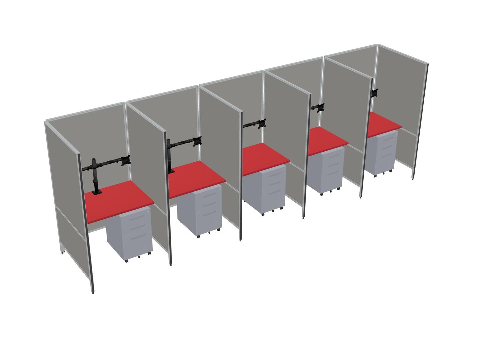Système De Panneaux Flexibles Prism Red Pour 5 Tiroirs Mobiles En Métal Et Bras D'écran (bras Doubles)