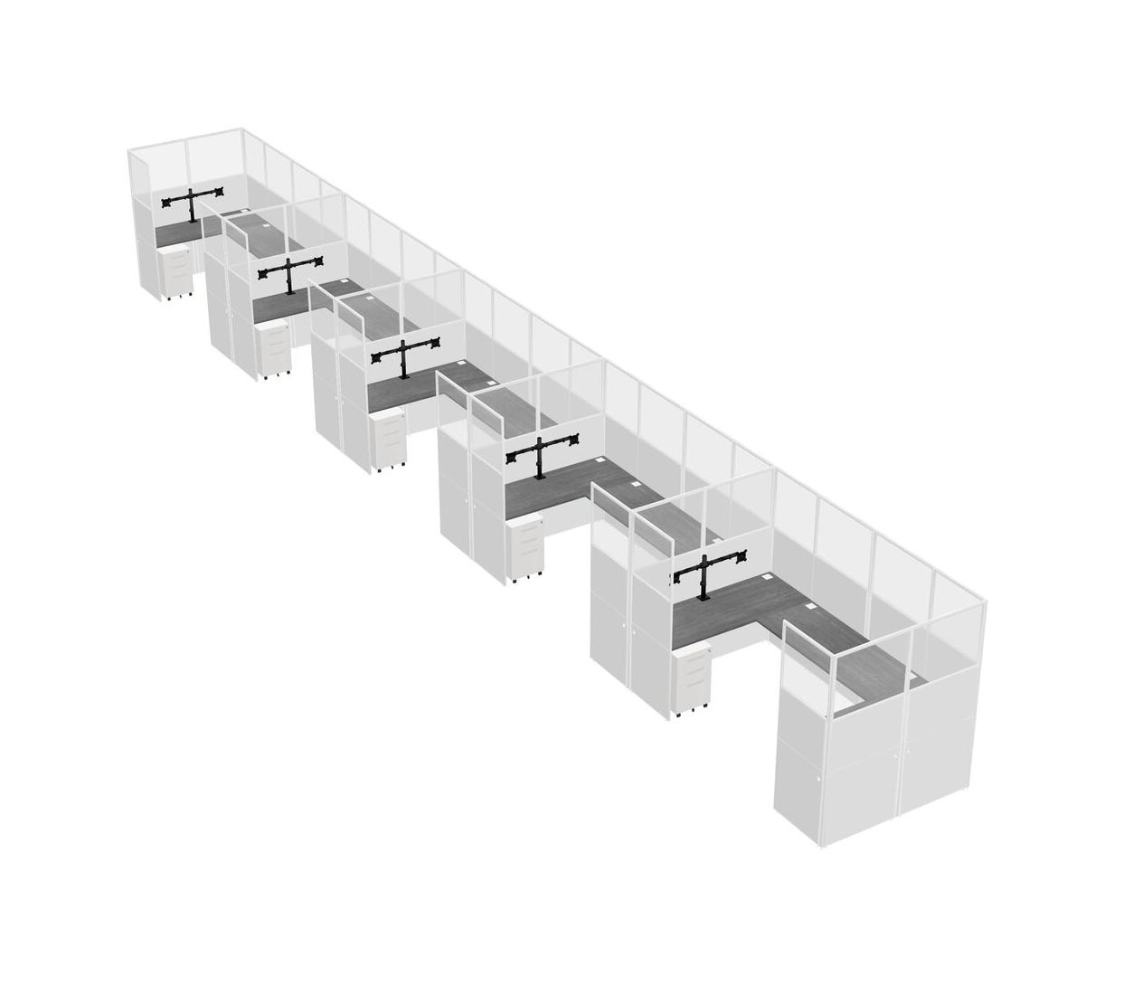 Système De Panneaux En U Gris Pour 5 Personnes + Bras D'écran (bras Doubles) + Tiroirs Mobiles En Métal Pour 5 Utilisateur(s)