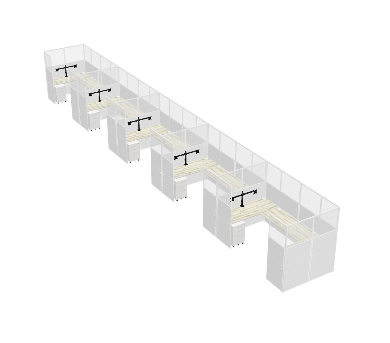 Système De Panneaux En U Heinne Holz Pour 5 Personnes + Bras D'écran (bras Doubles) + Tiroirs Mobiles En Métal Pour 5 Utilisateur(s)