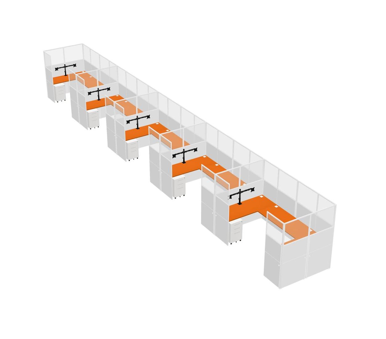 Système De Panneaux En U Orange Pour 5 Personnes + Bras De Moniteur (bras Doubles) + Tiroirs Mobiles En Métal Pour 5 Utilisateur(s)