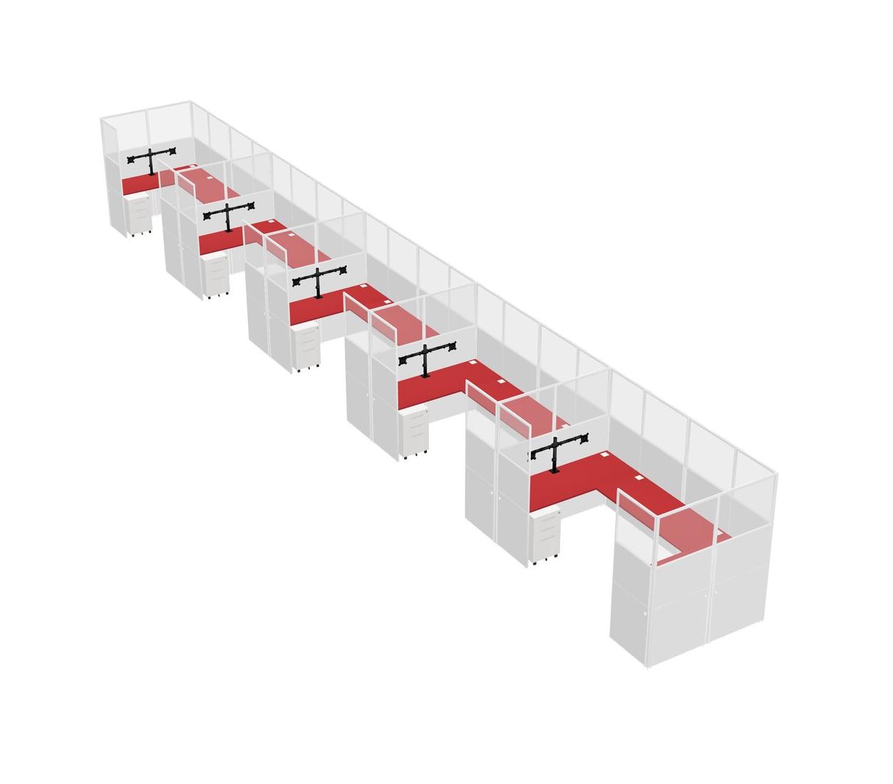 Système De Panneaux En U Prism Red Pour 5 Personnes + Bras D'écran (bras Doubles) + Tiroirs Mobiles En Métal Pour 5 Utilisateur(s)