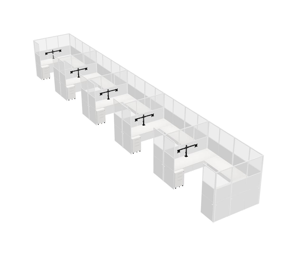 Système De Panneaux Blancs En U Pour 5 Personnes + Bras D'écran (bras Doubles) + Tiroirs Mobiles En Métal Pour 5 Utilisateur(s)
