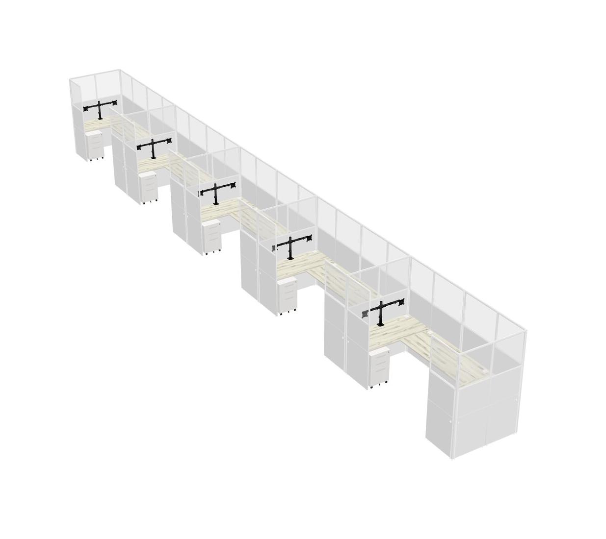 Système De Panneaux En U Heinne Holz Pour 5 Personnes + Bras D'écran (bras Doubles) + Tiroirs Mobiles En Métal Pour 5 Utilisateur(s)