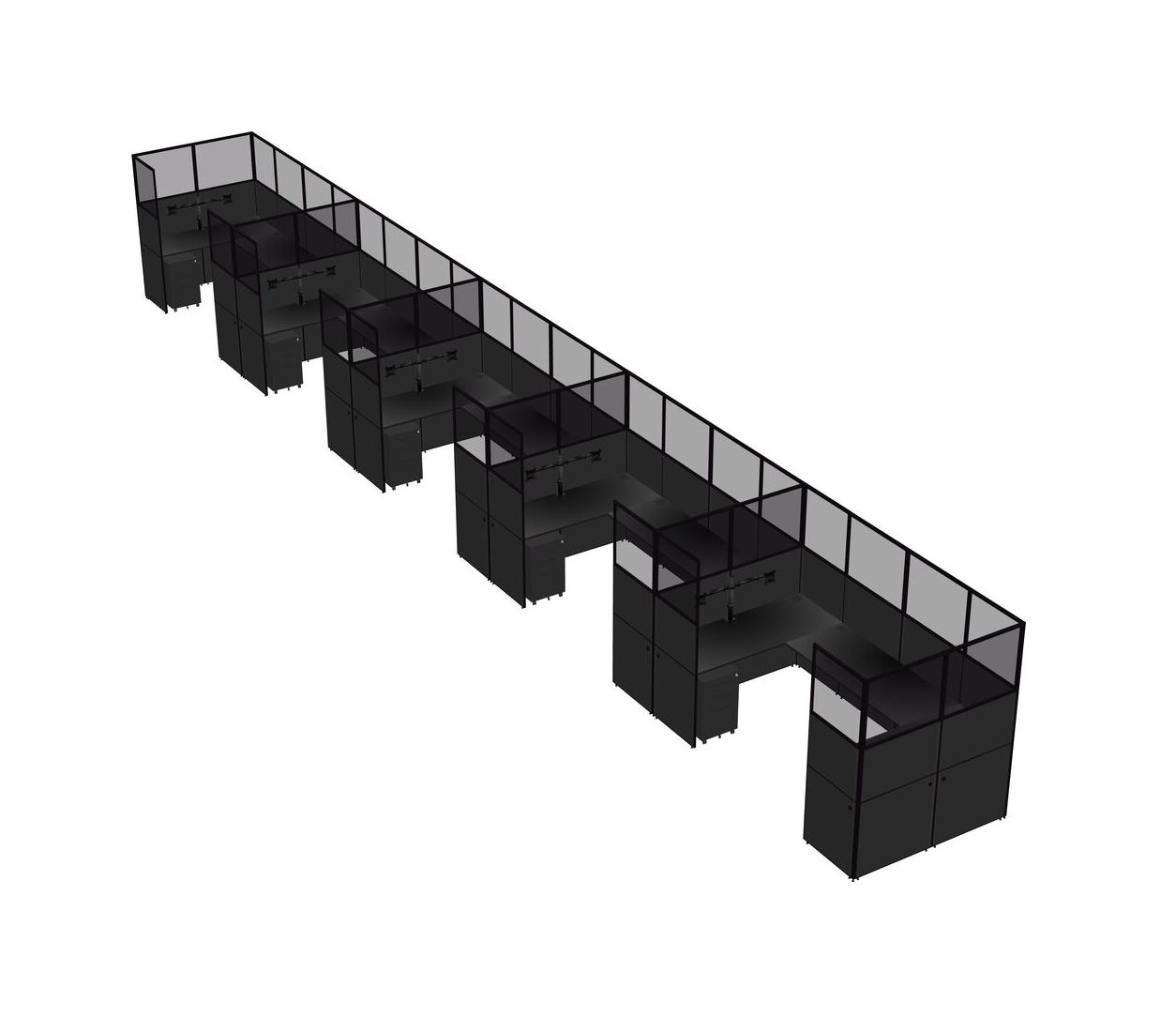 Système De Panneaux En U Noir Pour 5 Personnes + Bras D'écran (bras Doubles) + Tiroirs Mobiles En Métal Pour 5 Utilisateur(s)