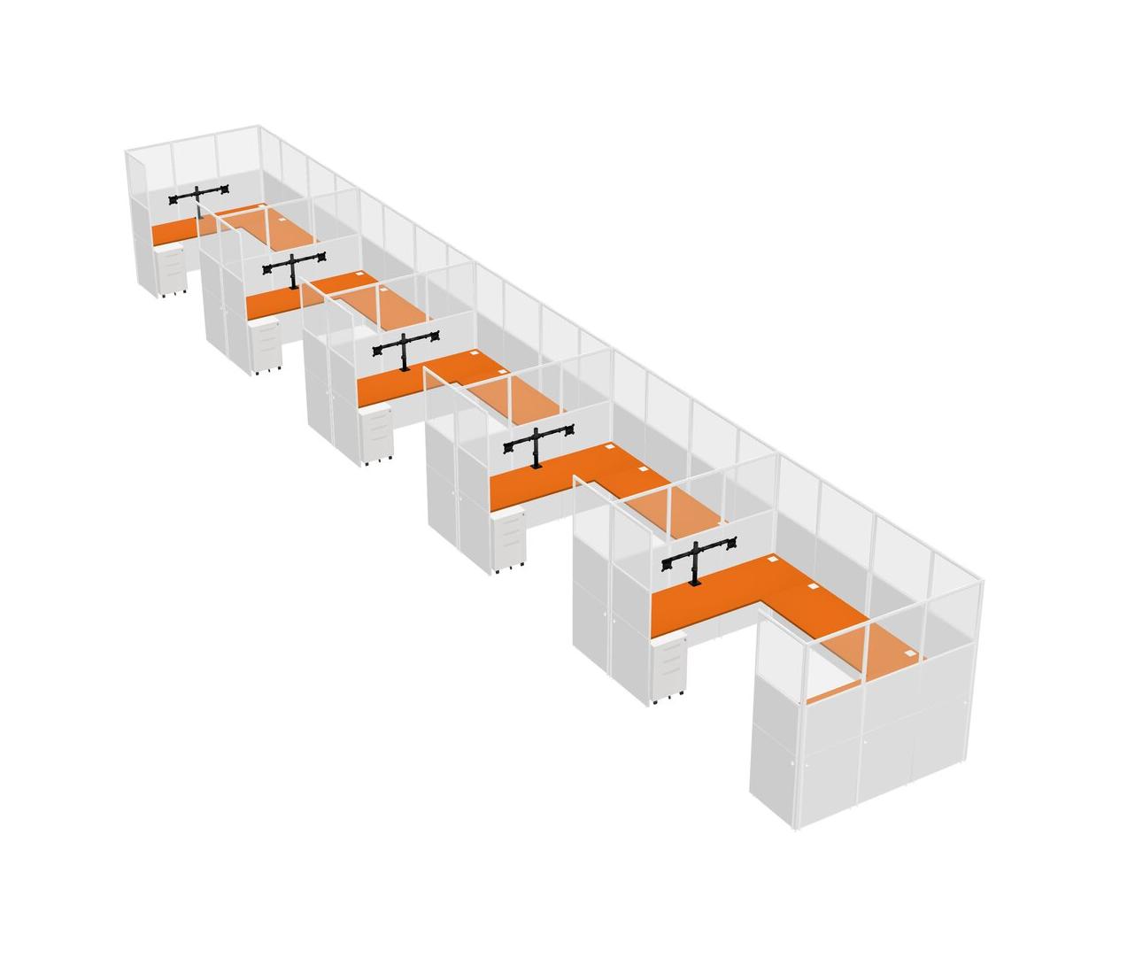 Système De Panneaux En U Orange Pour 5 Personnes + Bras De Moniteur (bras Doubles) + Tiroirs Mobiles En Métal Pour 5 Utilisateur(s)