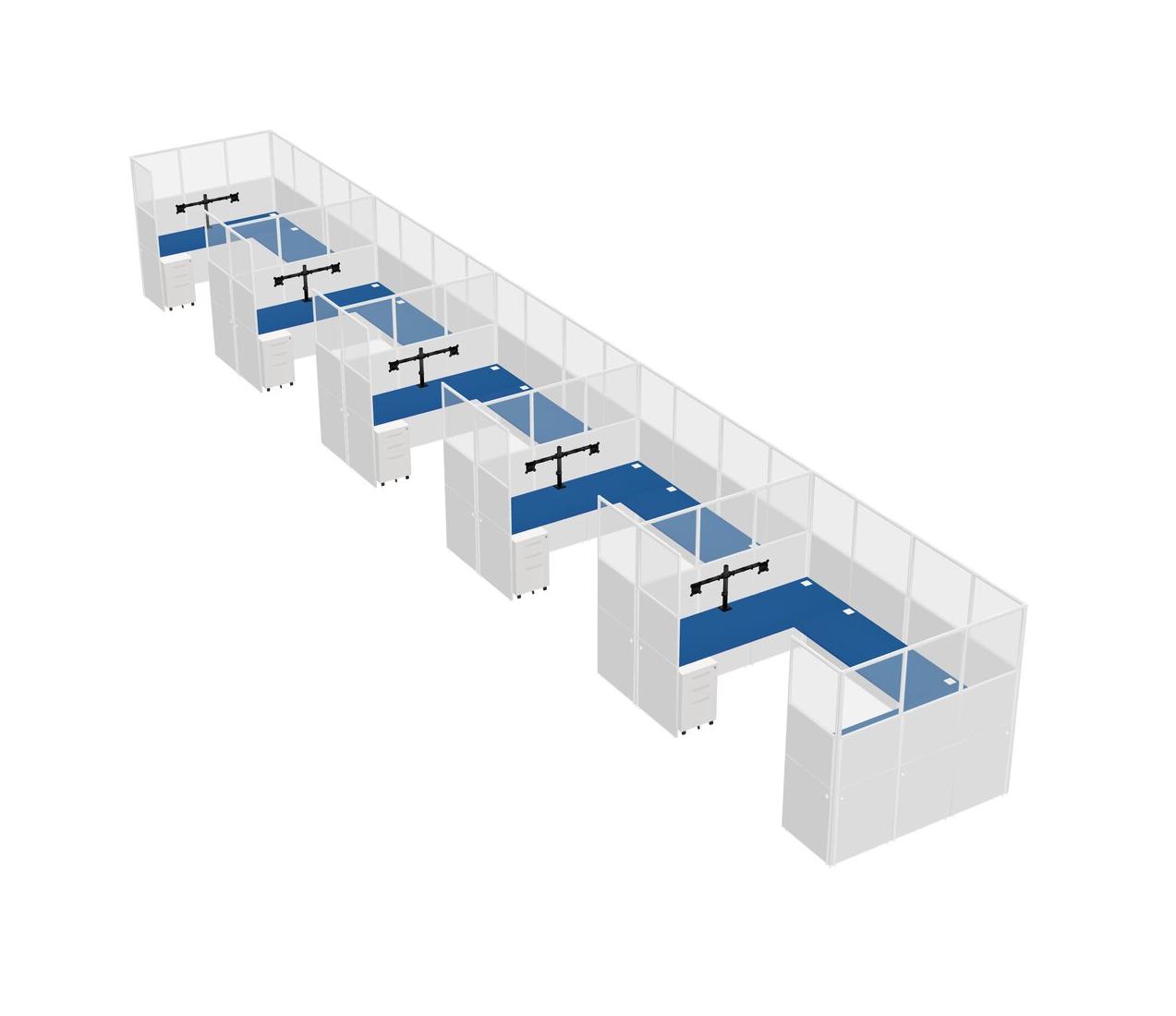 Système De Panneaux En U Prism Blue Pour 5 Personnes + Bras D'écran (bras Doubles) + Tiroirs Mobiles En Métal Pour 5 Utilisateur(s)