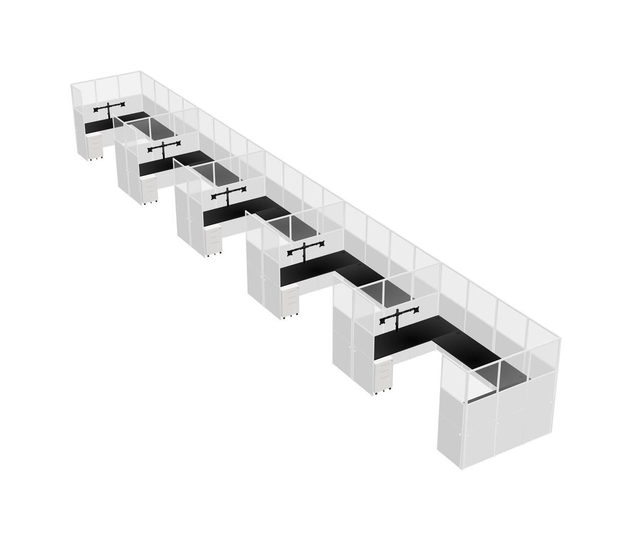 Système De Panneaux En U Noir Pour 5 Personnes + Bras D'écran (bras Doubles) + Tiroirs Mobiles En Métal Pour 5 Utilisateur(s)