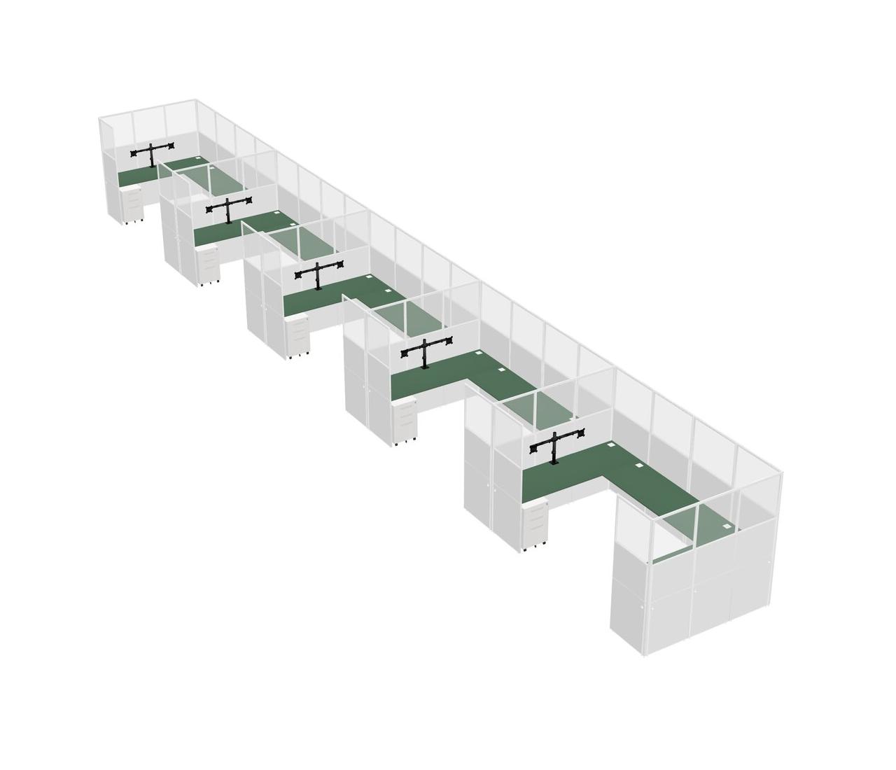 Système De Panneaux En U Vert Pour 5 Personnes + Bras De Moniteur (bras Doubles) + Tiroirs Mobiles En Métal Pour 5 Utilisateur(s)