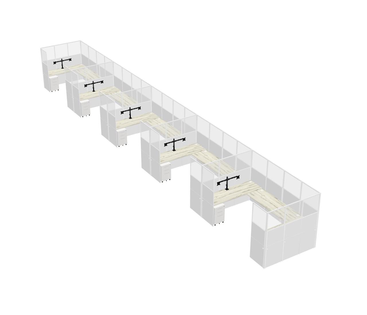 Système De Panneaux En U Heinne Holz Pour 5 Personnes + Bras D'écran (bras Doubles) + Tiroirs Mobiles En Métal Pour 5 Utilisateur(s)