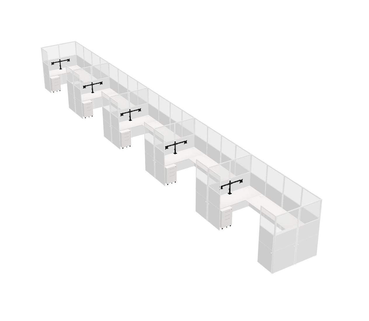Système De Panneaux Blancs En U Pour 5 Personnes + Bras D'écran (bras Doubles) + Tiroirs Mobiles En Métal Pour 5 Utilisateur(s)