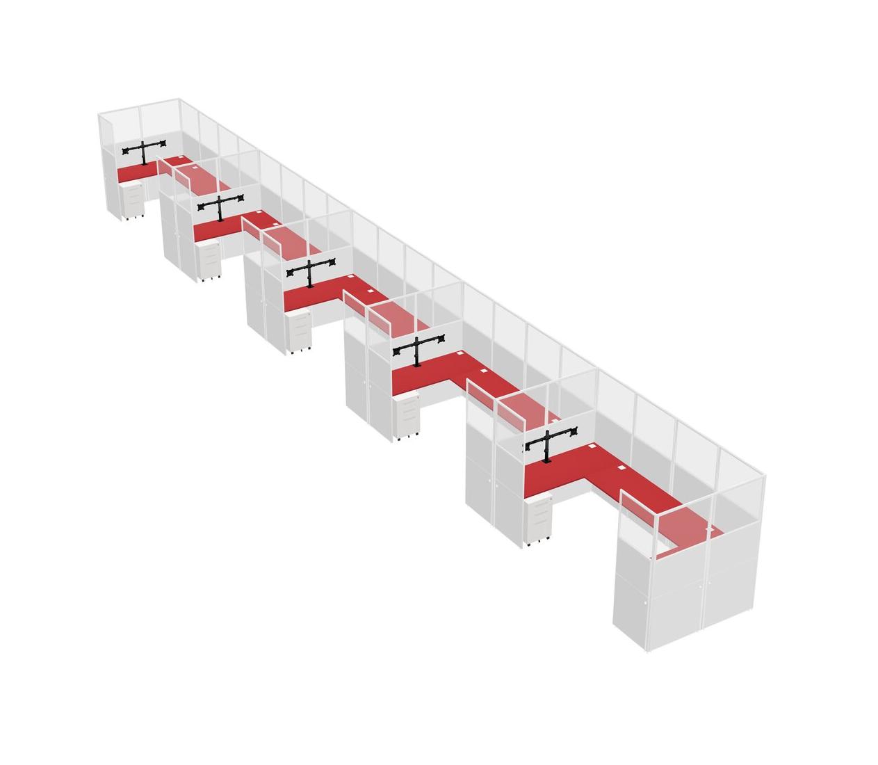 Système De Panneaux En U Prism Red Pour 5 Personnes + Bras D'écran (bras Doubles) + Tiroirs Mobiles En Métal Pour 5 Utilisateur(s)